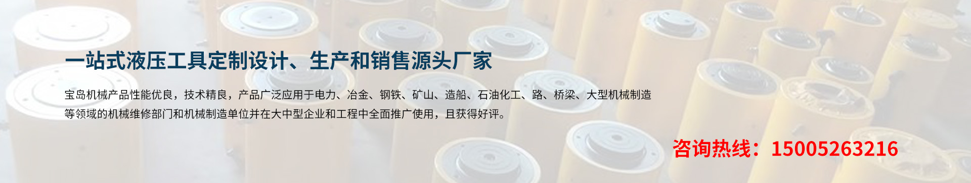 泰州市寶島機(jī)械制造有限公司位于長(zhǎng)江三角洲著名的工具制造基地 -- 江蘇泰州。京滬、寧通高速公路,新長(zhǎng)、寧啟鐵路貫穿全境。交通運(yùn)輸條件十分便利。 BDYYJX寶島機(jī)械制造公司專業(yè)生千斤頂、液壓千斤頂、電動(dòng)液壓千斤頂、大噸位千斤頂、薄型千斤頂、橋梁千斤頂、同步液壓千斤頂、空心千斤頂、自鎖式千斤頂;液壓螺母、液壓螺栓拉伸器;液壓扳手、電動(dòng)(手動(dòng))液壓扳手;液壓彎管機(jī)、電動(dòng)(手動(dòng))液壓彎管機(jī)、液壓彎排機(jī);試壓泵、電動(dòng)試壓泵;軸承加熱器、微電腦軸承加熱器、感應(yīng)拆卸器;液壓拉馬(拔輪器)、電動(dòng)小車式升降液壓拉馬;螺帽破切器、液壓沖孔機(jī)、液壓平彎?rùn)C(jī)、液壓開(kāi)孔器、母線加工機(jī)、電動(dòng)液壓升降(平臺(tái))機(jī)等液壓工具。 是國(guó)內(nèi)液壓機(jī)電業(yè)配套的綜合性企業(yè),服務(wù)于國(guó)內(nèi)各類大中型企業(yè)。 寶島機(jī)械產(chǎn)品性能優(yōu)良,技術(shù)精良,產(chǎn)品廣泛應(yīng)用于電力、冶金、鋼鐵、礦山、造船、石油化工、路、橋梁、大型機(jī)械制造等領(lǐng)域的機(jī)械維修部門和機(jī)···